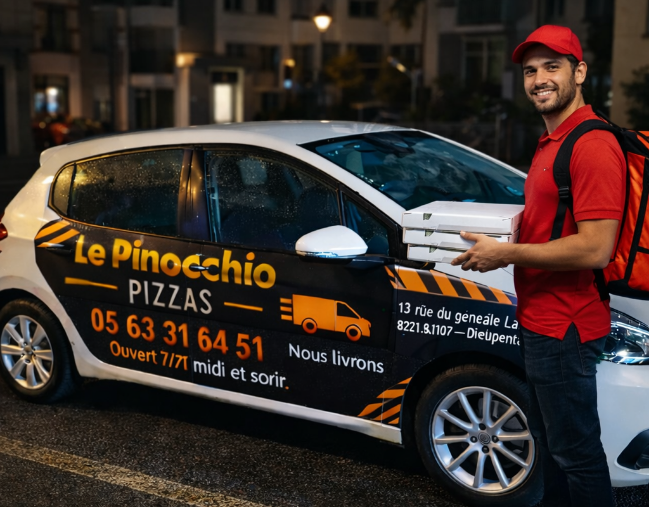 Pinocchio Pizza est une pizzeria à Dieupentale spécialisée dans les pizzas maison cuites à la minute. Notre pizzeria à Dieupentale propose des recettes généreuses, à emporter ou en livraison dans les communes voisines. Découvrez nos pizzas préparées avec des ingrédients frais et une pâte maison pétrie chaque jour.